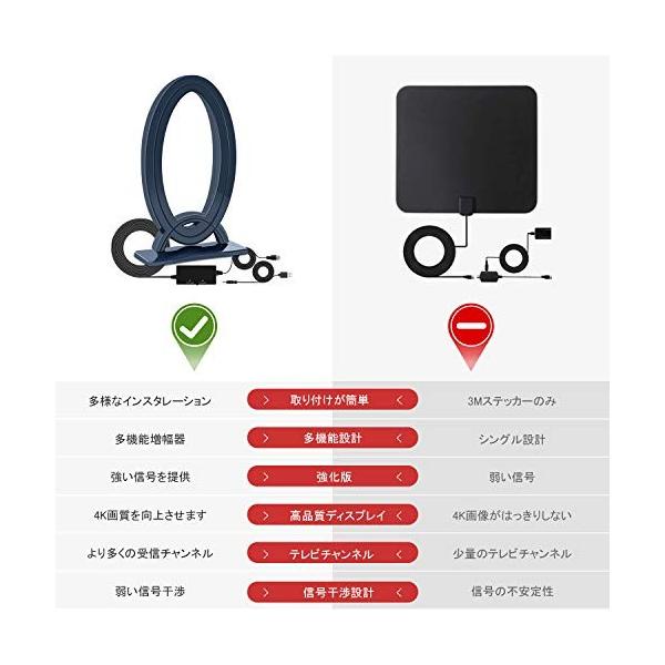 amazon co jp 室内アンテナ テレビアンテナ 地デジアンテナ 4k hd tv デジタル アンテナ ブースター内蔵 100km受信範囲 アンテナ 3mケーブル付き 全種類テレビ対応 高感度 uhf vhf対応 usb式 設置簡単 カメラ